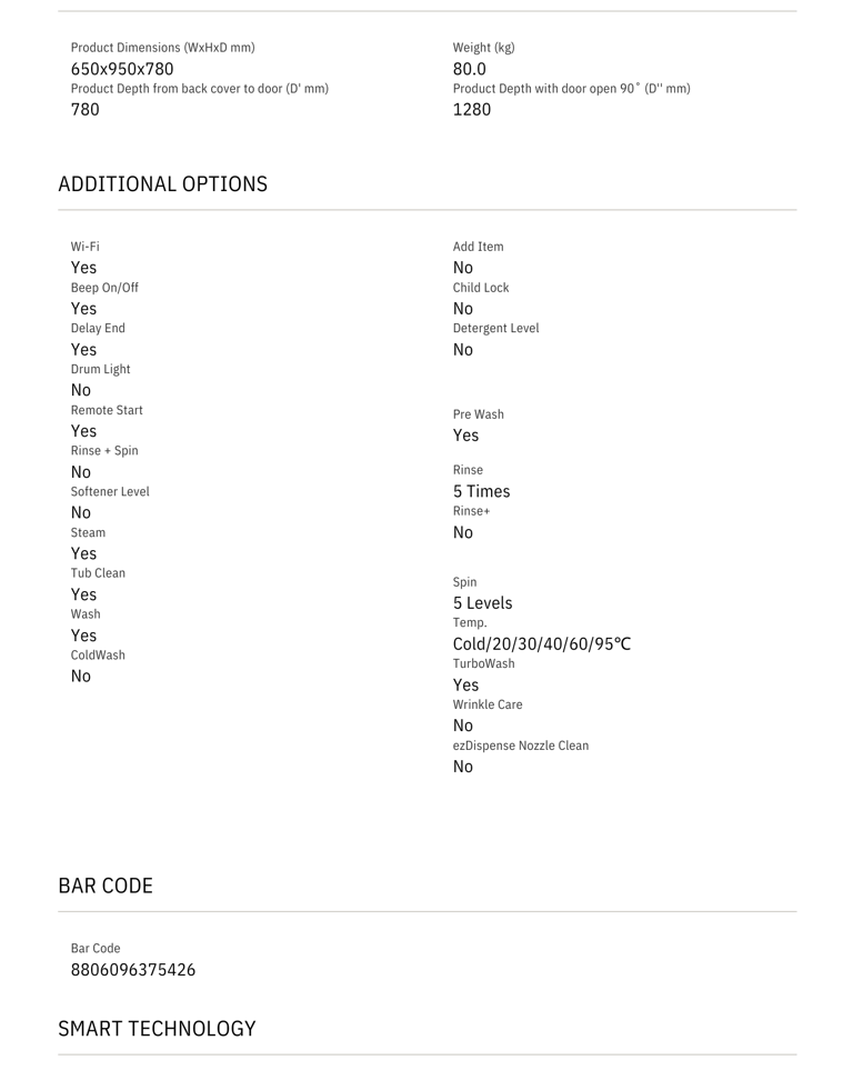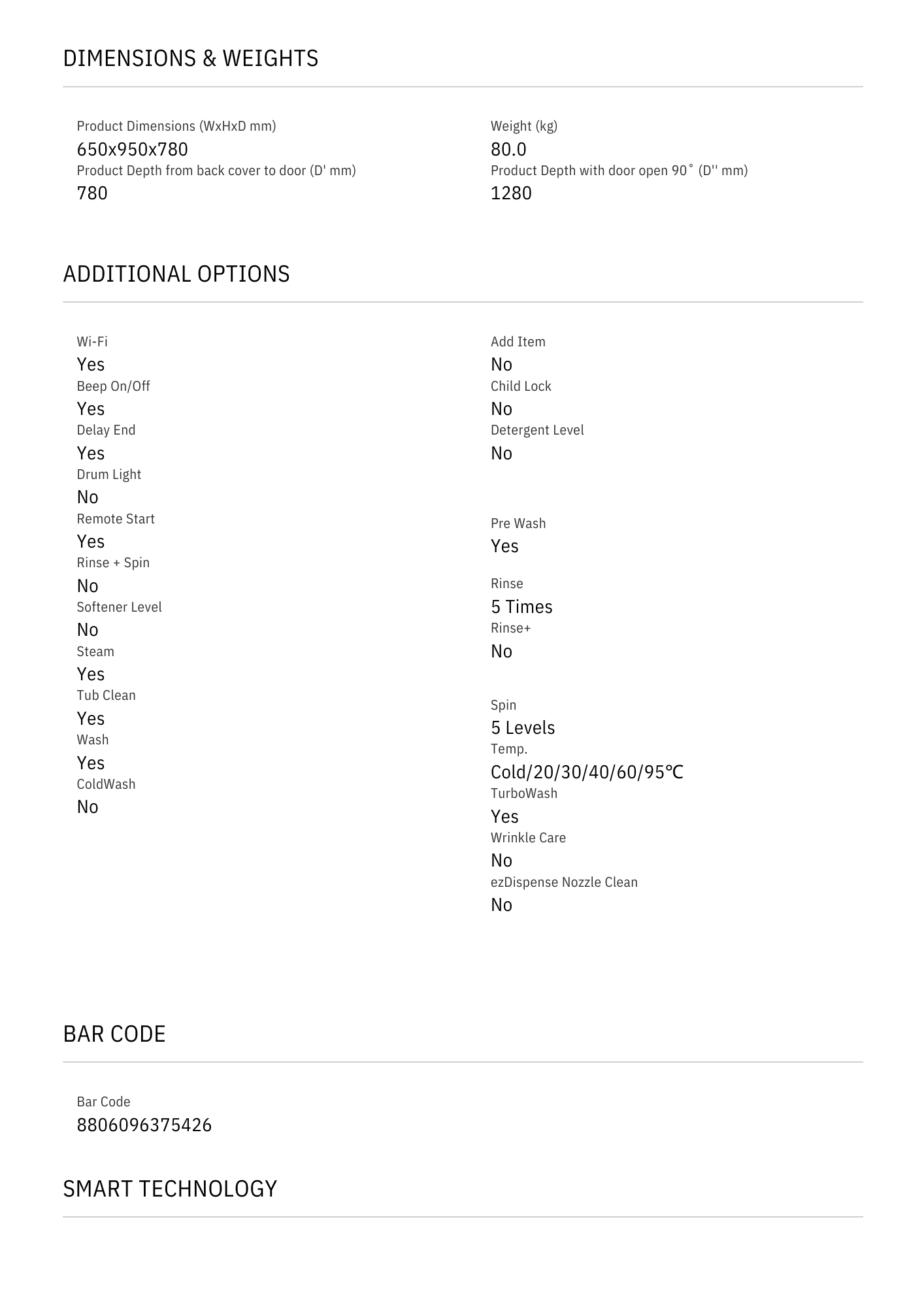 Washes quickly with a multi-directional spray that takes just 39 minutes