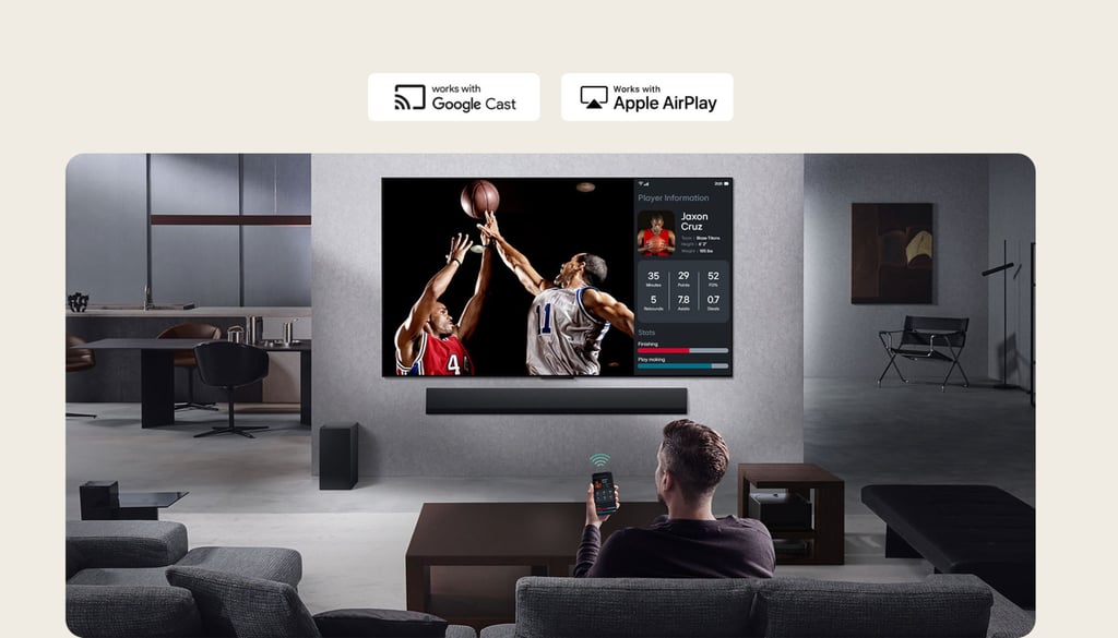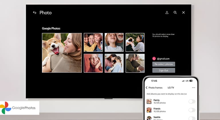 Conveniently connect your Google Photos account to your TV just by using your phone. Effortlessly personalize your space by using content from your own photo library.